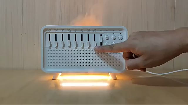 Functions: white noise & soundscapes, aroma diffuser/light humidifier, RGB night light, Bluetooth.